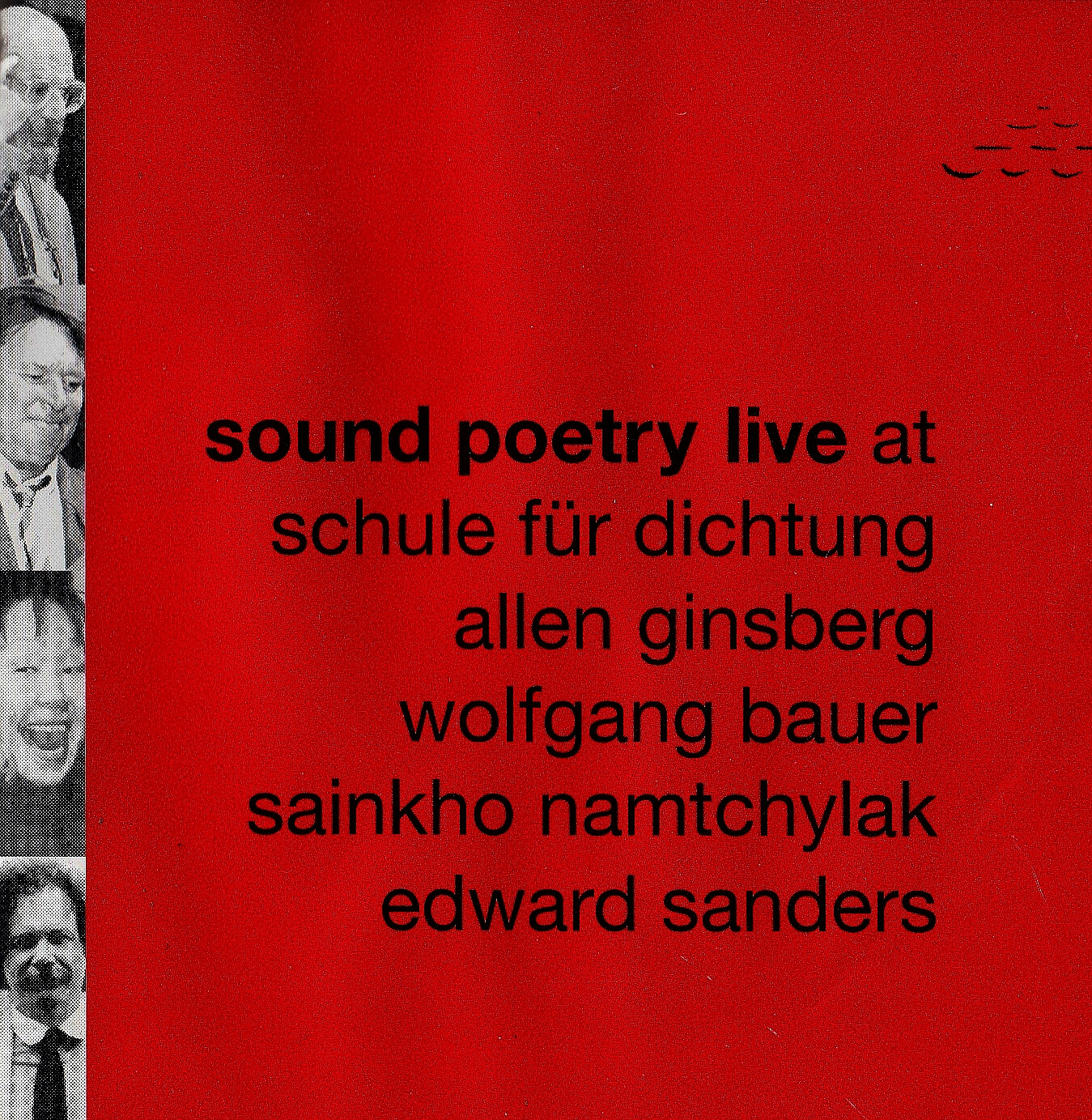 Falco live in den Wiener Sophiensälen, H.C. Artmann, Allen Ginsberg, Dorothea Zeemann, Sainkho Namcylak, Christian Loidl, Nick Cave, Ide Hintze, Gerhard Rühm, Wolfgang Bauer, Konstantin Wecker, Henri Chopin, Jack Collom, Ann Waldmann, Ann Tardos, Jackson Mac Low, Bodo Hell, Peter Rosei, Friederike Mayröcker, Gert Jonke, Christine Huber, Blixa Bargeld, Julie Patton, Raoul Schrott, Rolf Schwendter, Jaap Blonk, Ginka Steinwachs, Barbara Frischmuth u.v.a.m.